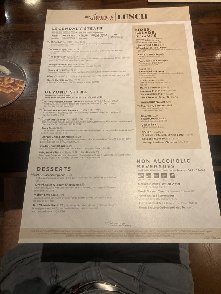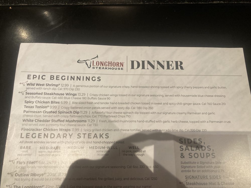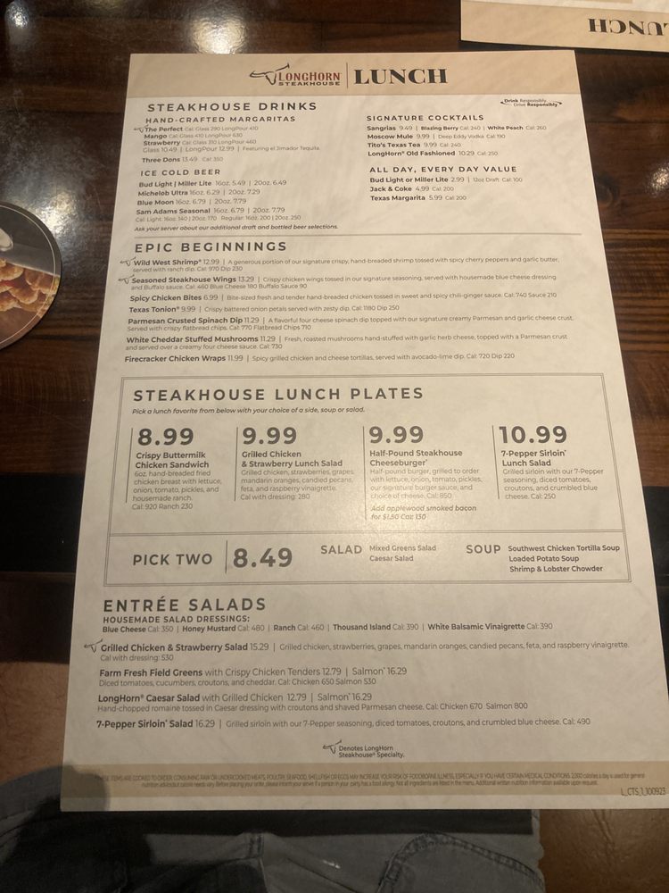 LongHorn Steakhouse, a renowned brand in the steakhouses category, located in Chandler, AZ, offers a variety of dishes with excellent utilities like takeout, delivery, and vegetarian options. The menu boasts enticing starters such as Parmesan Crusted Spinach Dip, Wild West Shrimp, and Spicy Chicken Bites. Customers rave about the superb steak quality and efficient service. The management's active presence ensures a seamless dining experience. Reviews highlight the delicious Ribeye Steak, Loaded Baked Potato, and Baby Back Ribs. While some dishes like the Brussel Sprouts and Mac and Cheese may have a sweeter taste than expected, the overall dining experience at LongHorn Steakhouse is deemed delightful and reasonably priced. The inviting ambiance, efficient service, and delectable dishes make LongHorn Steakhouse a must-visit for steak enthusiasts.